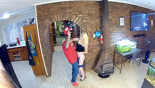 Milf gets fucked hard from behind while beeing outside making firewood.